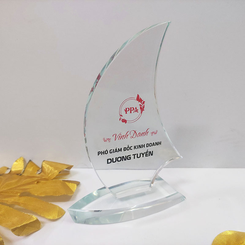 Hỗ trợ phí khắc laze, in UV với cúp, kỷ niệm chương pha lê.